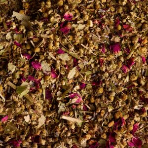 Ingredients: Chamomile (33%), Hawthorn (25%), Passion Flower (11%), Mango (8%), Linden Blossom (7%), Lavender (7%) and Rose (4%).
